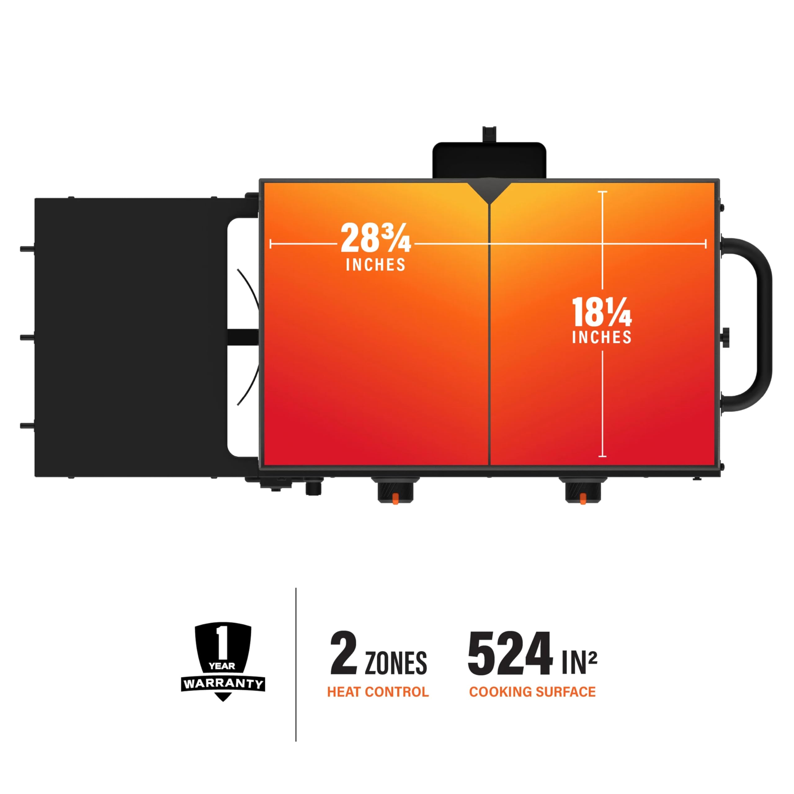- Two Independently Controlled Cooking Zones – This griddle grill is designed to enhance your cooking experience by featuring two distinct cooking zones, enabling you to simultaneously prepare a variety of items without any hassle. This Blackstone flat top grill boasts a generous 527 square inch cooking surface, providing ample space for you to cook for a large group of people or for preparing multiple dishes at once.