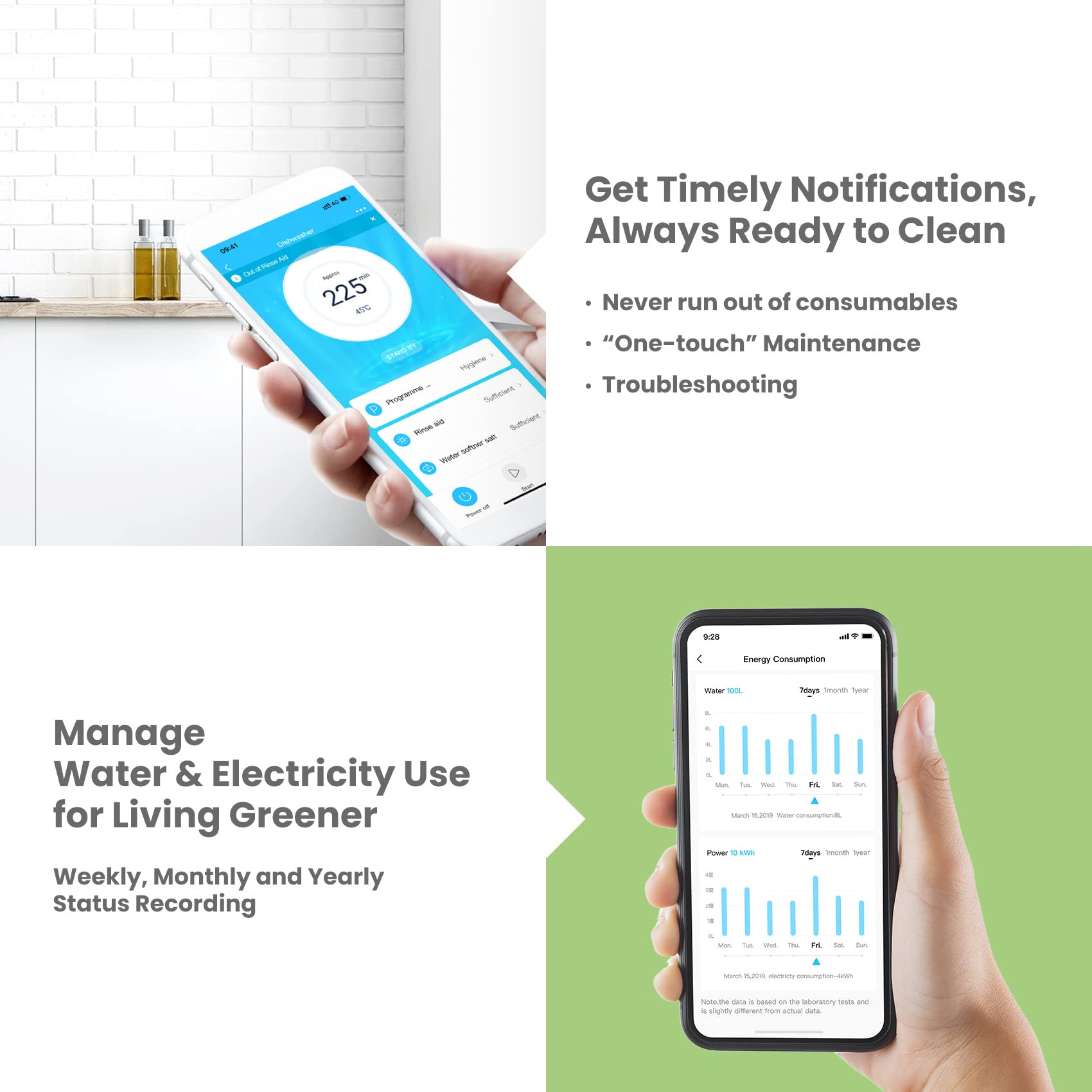 - 【IOT Function】With the handy MSmartHome app control you can plan, start & pause a wash cycle from your phone, it also notifies you when the salt & rinse aid are low & provides water & electricity usage reports.