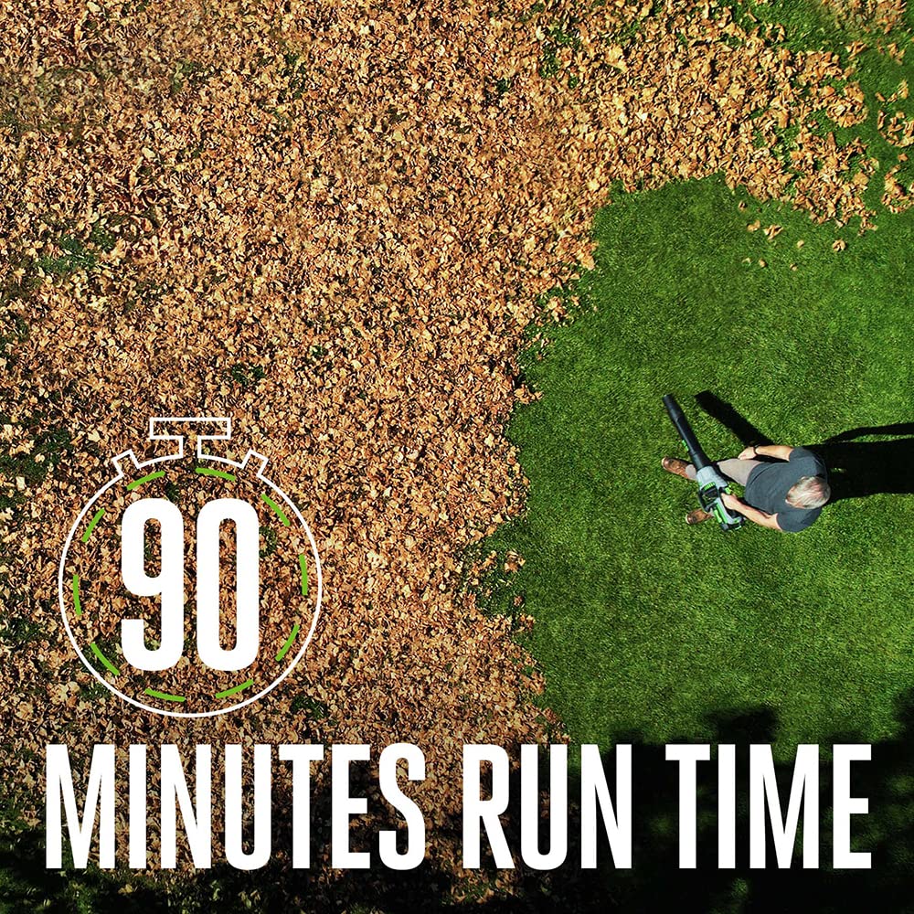- UP TO 90 MINUTES OF RUNTIME – Get up to 90 minutes of average runtime from the leaf blower with the included 5.0Ah battery; compatible with all EGO 56V ARC Lithium batteries