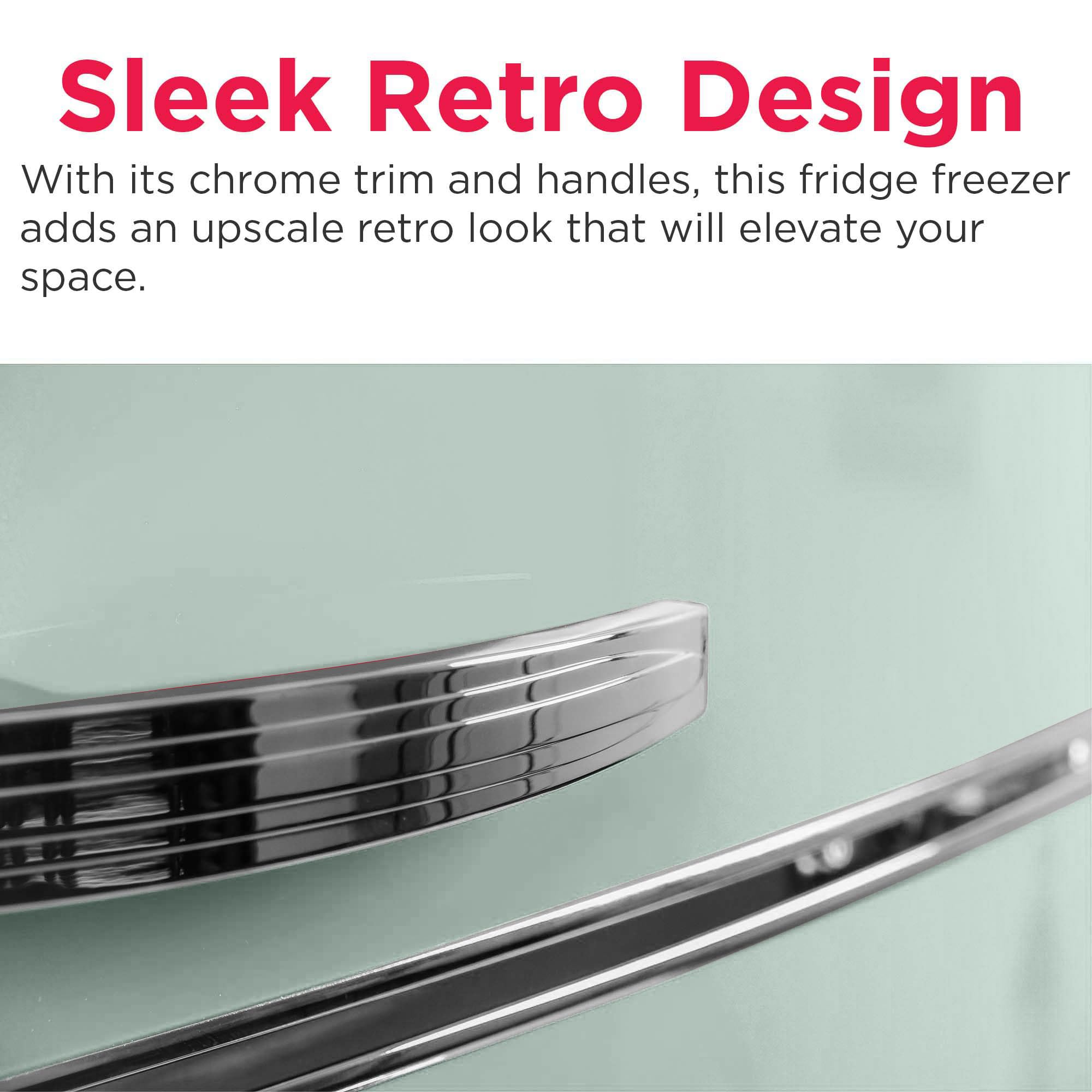 - RETRO DESIGN: This fridge has a retro style with chrome recessed door handles and hinges covers. Presenting a sophisticated and refined look in your apartment.