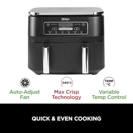 Ninja Foodi Dual Zone Digital Air Fryer, 2 Drawers, 7.6L, 6-in-1, Uses No Oil, Air Fry, Black