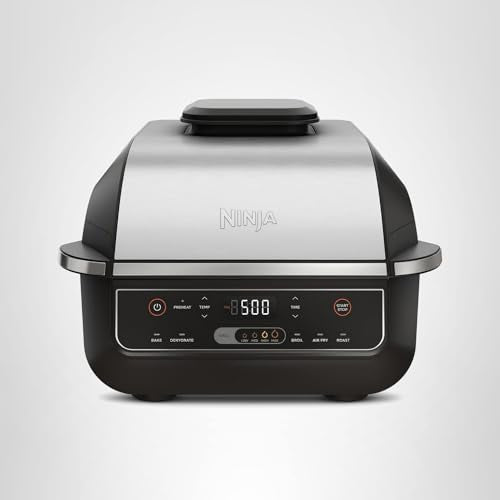 Ninja EG201 Foodi 6-in-1 Indoor Grill with Air Fry, Roast, Bake, Broil, & Dehydrate, 2nd Generation, Dishwasher Safe, Black/Silver
