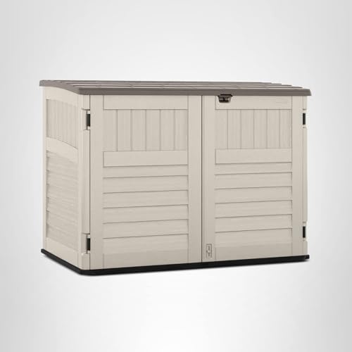 Suncast 5.9 ft. x 3.7 ft Horizontal Stow-Away Storage Shed – Natural Wood-Like Outdoor Storage for Trash Cans