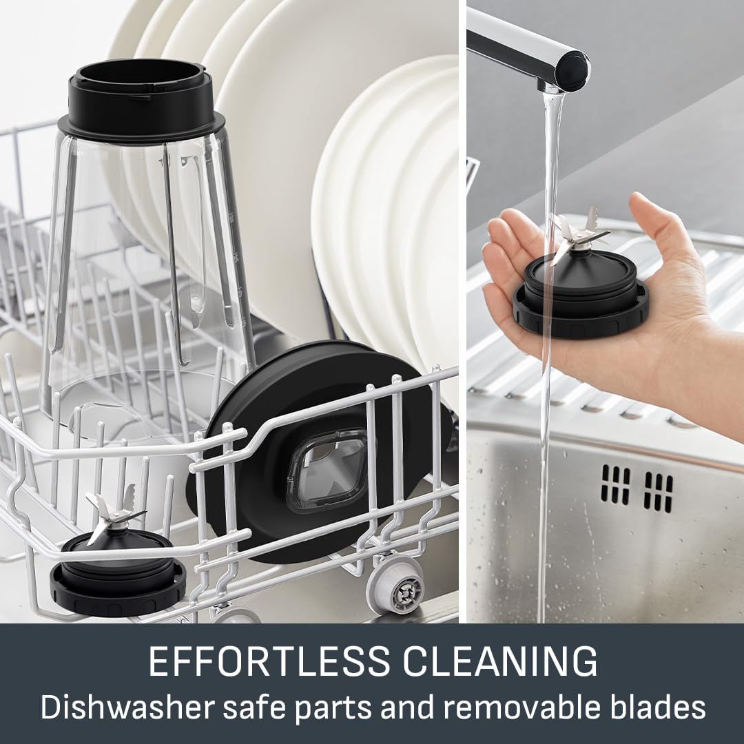 • EASY TO CLEAN: The blender’s easy-to-remove stainless steel blades and dishwasher-safe glass jar ensure effortless, thorough cleaning
